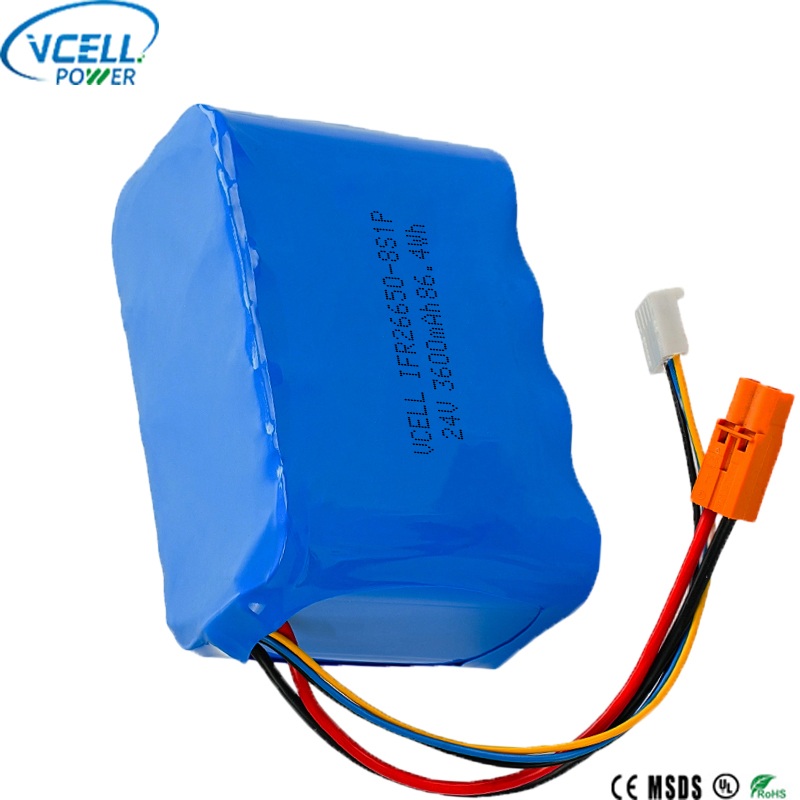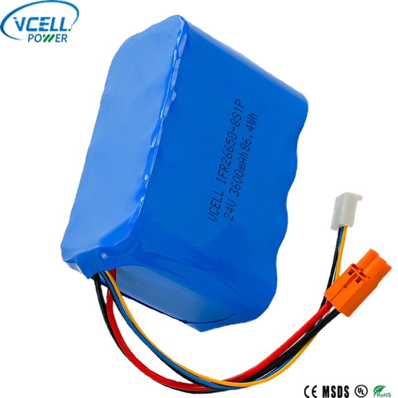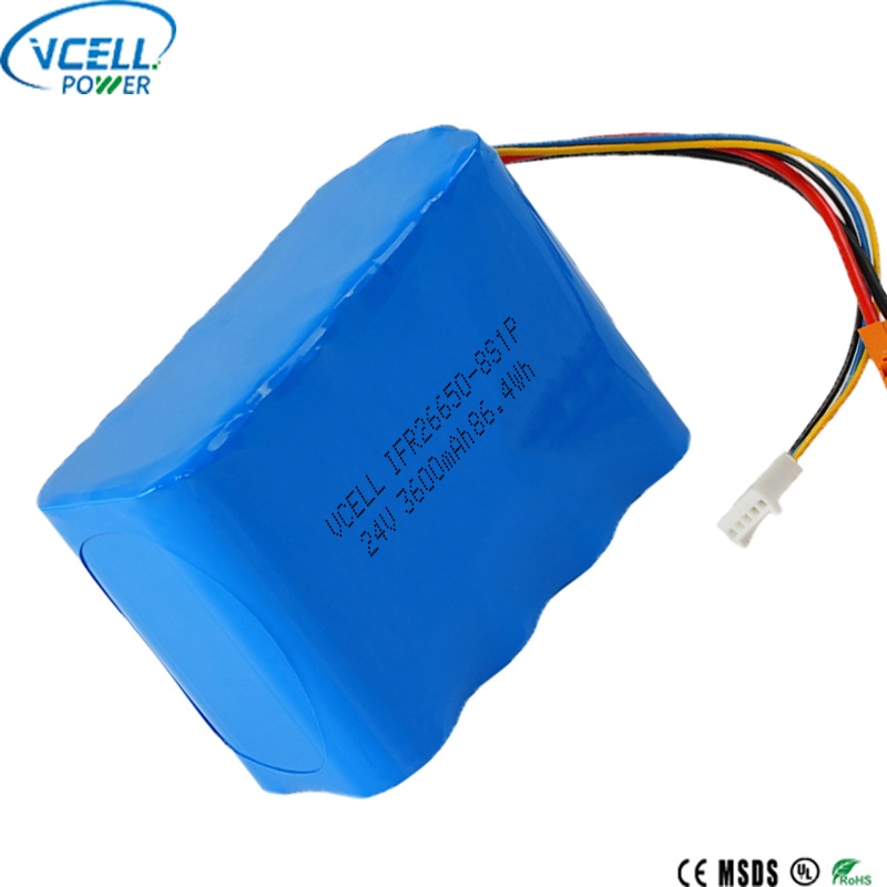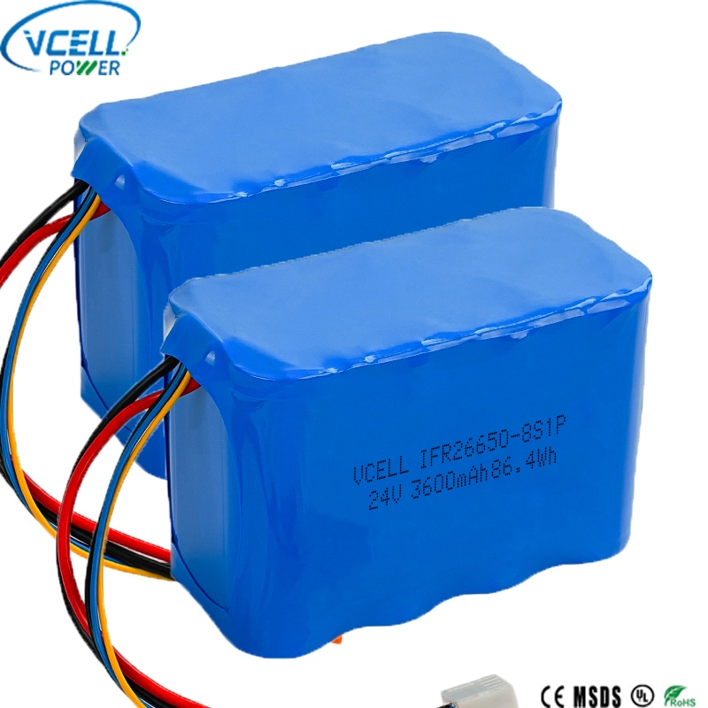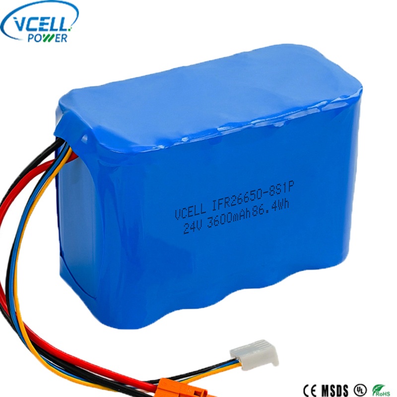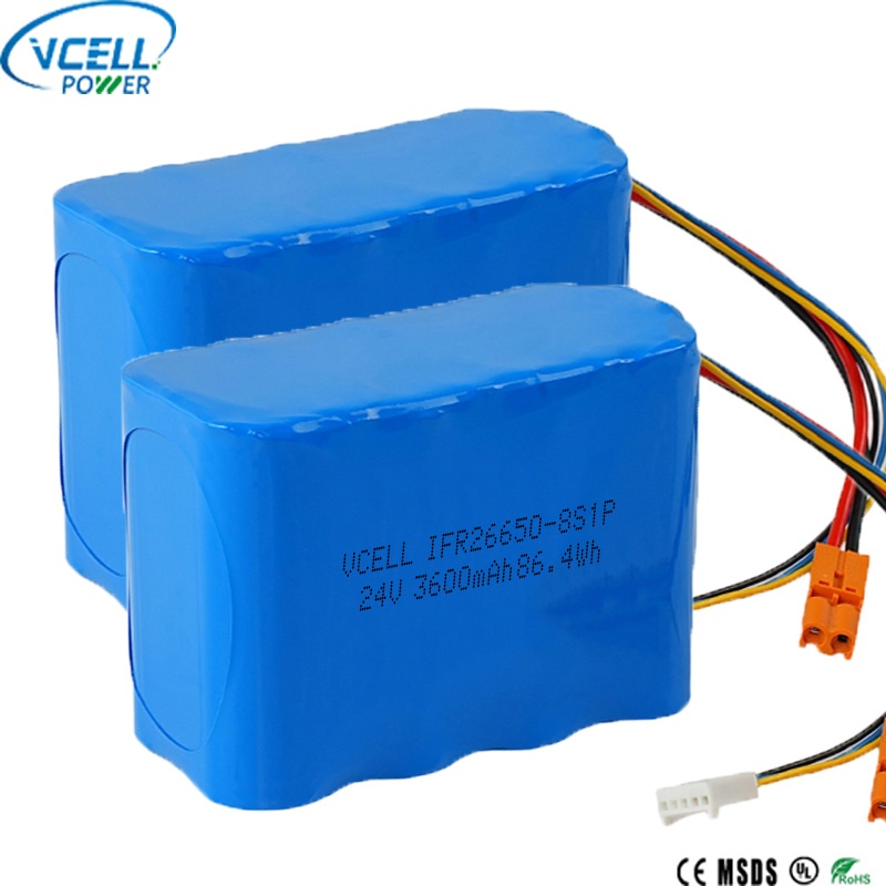 Denne genopladelige 24V 3600mAh 26650 LiFePO4 batteripakke er et højtydende 24V batteri fra Vcell Power batteriproducent i Kina. Den har et kompakt 8S1P-design med 3600mAh kapacitet og 86,4Wh energiudgang. Konstrueret med holdbare 26650 celler, VCELL 24V 3600mAh 26650 LiFePO4 genopladelig batteripakke giver mere end 2500 cyklusser levetid, fremragende termisk sikkerhed. Velkommen til forespørgsel!