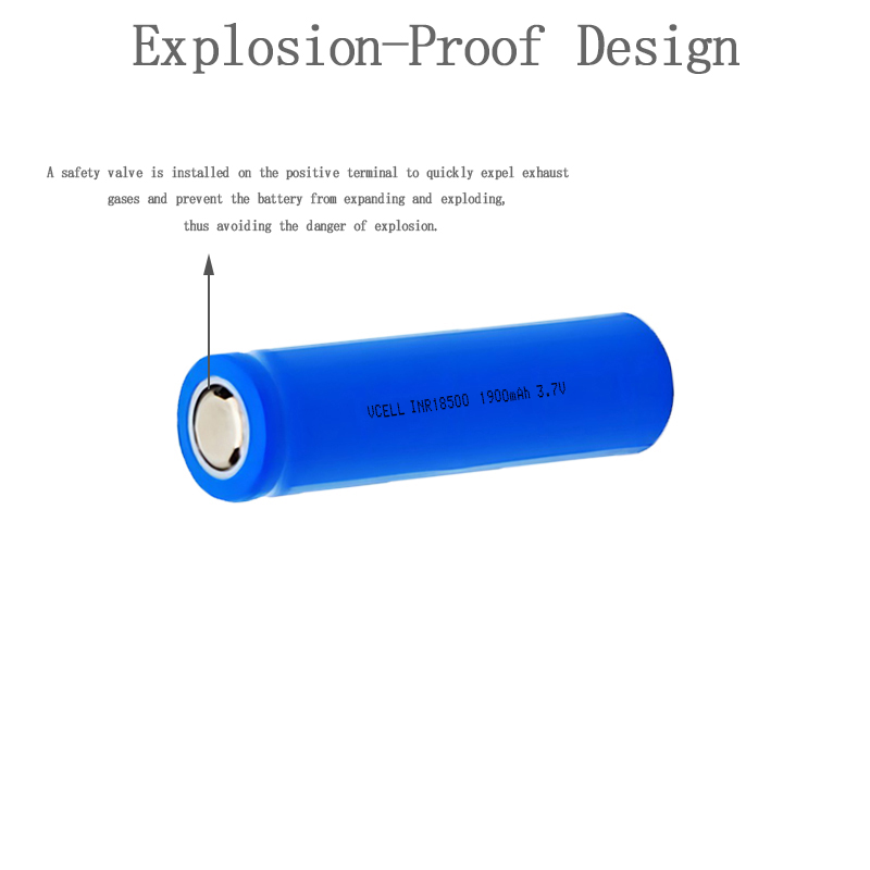 VCELL POWER højkvalitets 3,7V 1900mAh INR18500 lithium-ion batteri bruger lithium nikkel mangan cobalt oxid materiale, hvilket resulterer i høj energitæthed. Dens cylindriske design er kompakt og giver langvarig batterilevetid. En eksplosionssikker ventil på toppen af batteriet frigiver hurtigt internt tryk i unormale situationer, hvilket effektivt forhindrer batteribrud eller brand. Elektrodematerialer af høj kvalitet og præcise fremstillingsprocesser sikrer batterilevetid og giver over 700 opladnings-afladningscyklusser under standardforhold, hvilket giver fremragende værdi. Det er meget udbredt i forskellige professionel belysning, elværktøj, medicinsk udstyr, sikkerhedskommunikation og avancerede forbrugerelektronikprodukter.