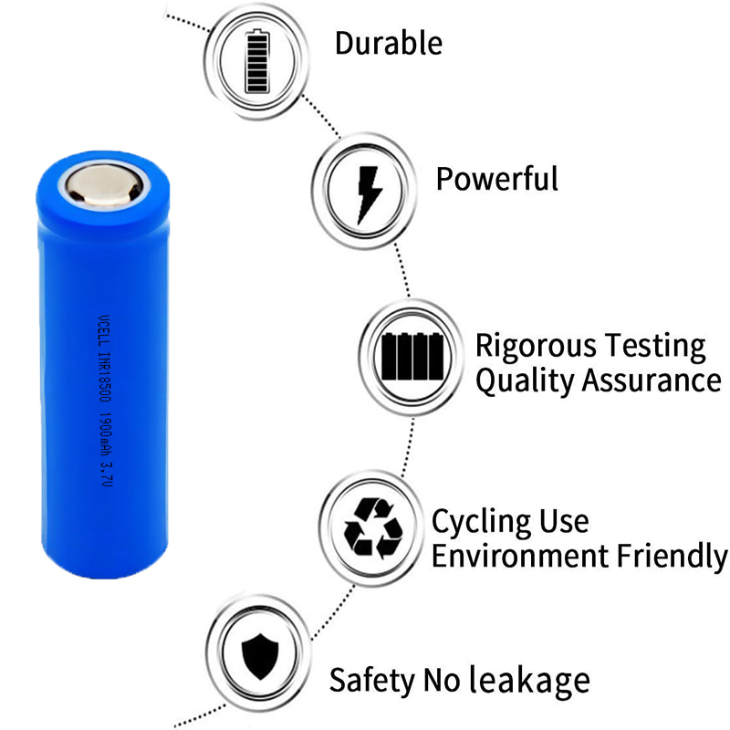 1.VCELL POWER 3.7v 1900mAh INR18500 lithium ion batteri bruger lithium nikkel mangan cobalt oxid materiale, som har høj energitæthed og lang batterilevetid.