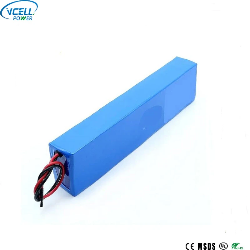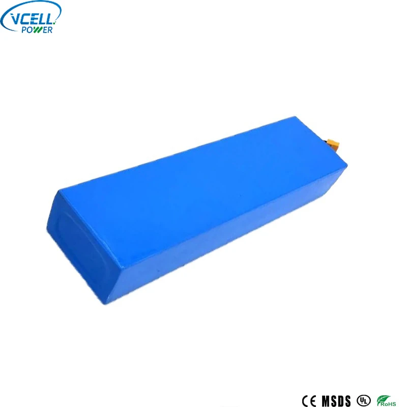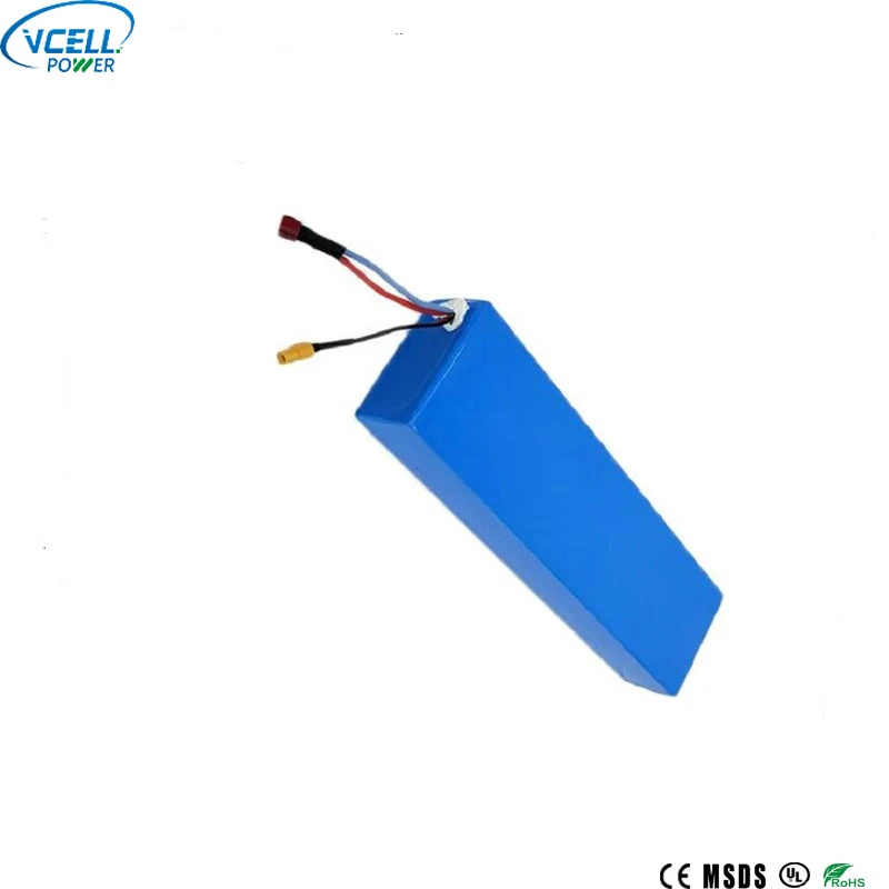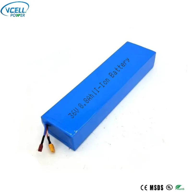 VCELL POWER fabrikkens højkvalitets 36V 8800mAh 18650 Lithium Ion genopladeligt batteri er et meget brugt batteri i små og mellemstore elektriske enheder. Den er samlet af 10S4P 2200mAh lithium-ion-celler, som tilbyder både høj energitæthed og stabil cyklusydelse ved at bruge moden teknologi. Den 36V nominelle spænding kombineret med en praktisk kapacitet på 8,8Ah skaber en god balance mellem størrelse, vægt og batterilevetid, hvilket opfylder behovene ved både daglig brug og kommercielle applikationer. Udstyret med en BMS giver den overopladning, overafladning, overstrøm og kortslutningsbeskyttelse, hvilket sikrer høj sikkerhed. Batteriet kan prale af en cykluslevetid på over 700 cyklusser, hvilket viser stærk holdbarhed.