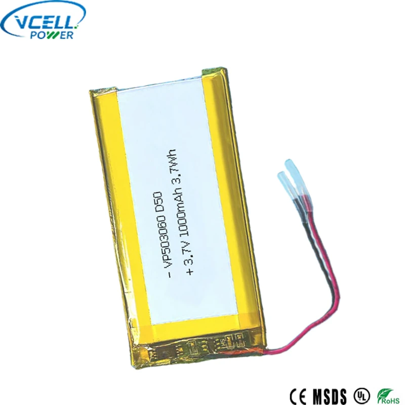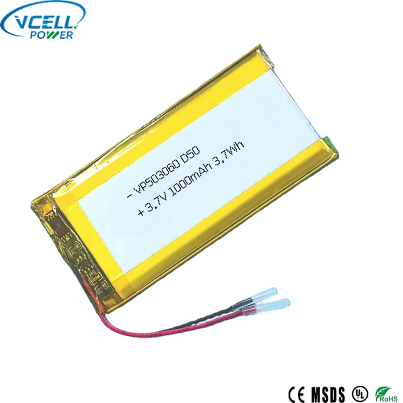 503060 3,7V 1000mAh 3,7Wh lithiumpolymerbatteri kommer fra en Kina-baseret batteriproducent-Vcell Power Co., LTD. Ved at udnytte ekspertisen fra vores kerne-R&D-team, streng produktionsproceskontrol og kvalitetsinspektionssystem leverer Vcell Power skræddersyede professionelle løsninger til fremstilling af lithiumpolymerbatterier. Har du nogle samarbejdsidéer?