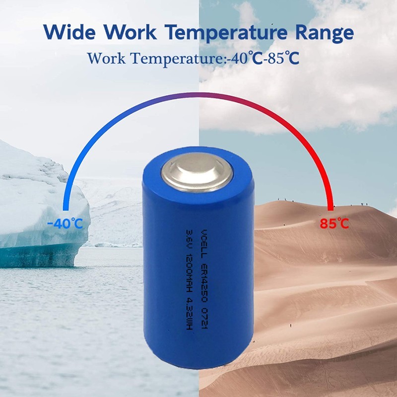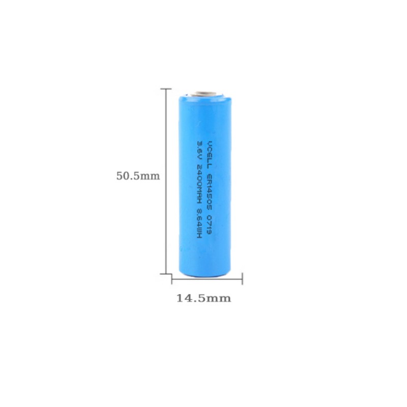 VCELL POWER ER14505 3,6V 2400mAh AA-størrelse Li SOCL2-batteri er et engangsbatteri med et fuldt forseglet design, et hus af rustfrit stål og metal-glasforsegling og lufttæt svejseteknologi, der sikrer sikkerhed og pålidelighed. Dens standard AA-størrelse gør den kompatibel med en lang række almindelige enheder. Dens brede driftstemperaturområde på -55°C til +85°C sikrer stabil drift i en række forskellige miljøer. Dens årlige selvafladningshastighed er mindre end 1 %, og dens holdbarhed ved stuetemperatur kan nå over 10 år, hvilket reducerer udstyrsvedligeholdelse betydeligt og tilbyder en omkostningseffektiv og økonomisk ydeevne. Dens høje energitæthed og ultralange levetid gør den til en ideel strømløsning til IoT, smarte målere og andre områder.