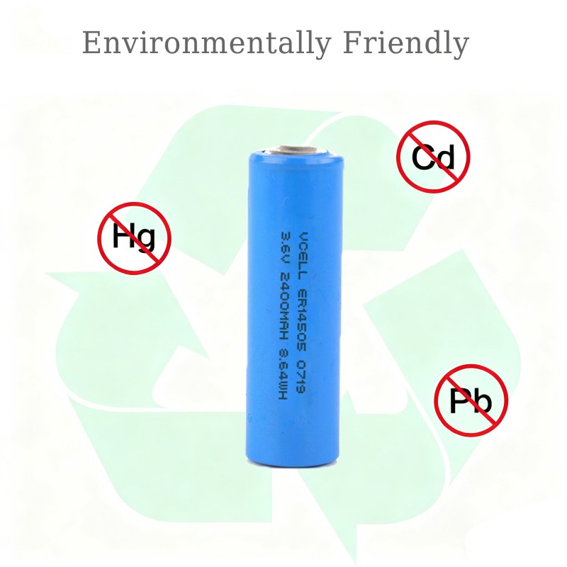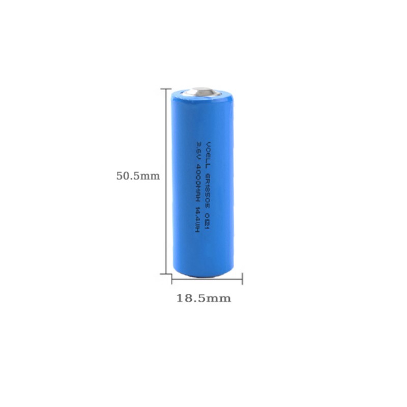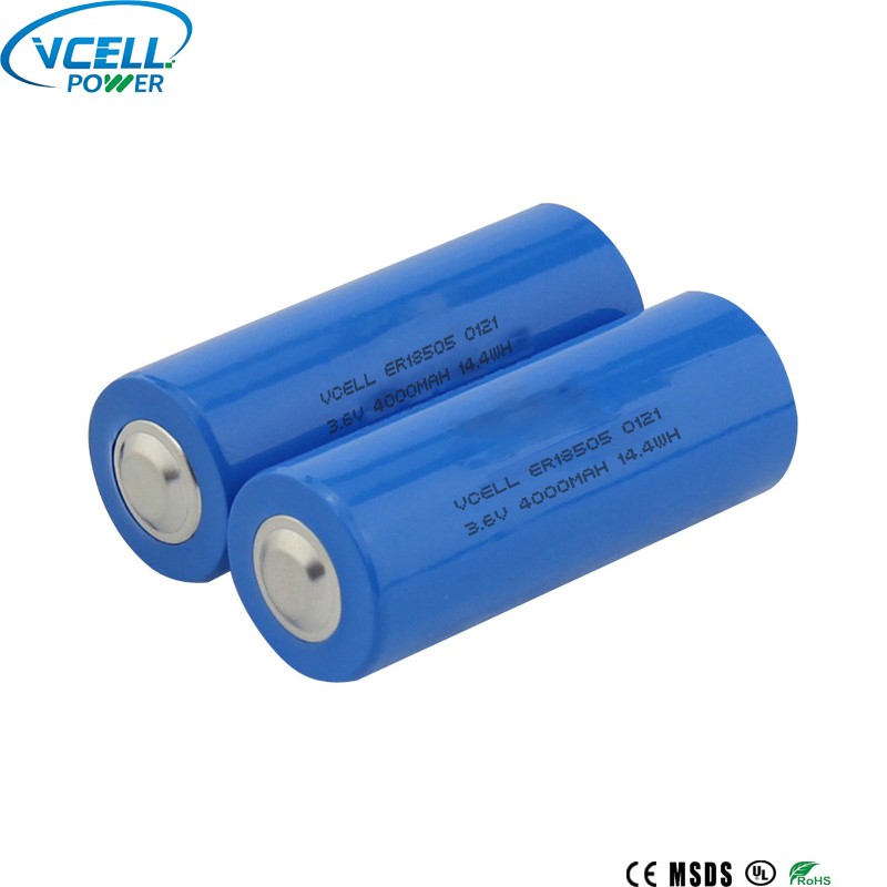 ER18505 3,6V 4000mAh primære Li SOCL2-batteri fra VCELL POWER, en kinesisk højteknologisk virksomhed, har et rustfrit stålhus og en metal-glasforseglet, lufttæt svejset struktur, hvilket sikrer et meget forseglet og strukturelt forsvarligt batteri. Kombineret med et strengt kvalitetskontrolsystem og internationale certificeringer forhindrer dette elektrolytlækage, sikkerhed og pålidelighed.